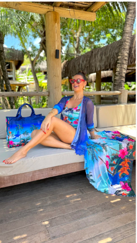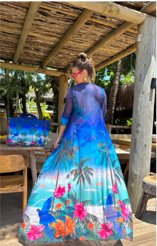 A saída de praia é uma saída longa, desenvolvida em tecido tule com bastante elastano, super confortável, toque suave no corpo, fresca e perfeita para o Verão, uma peça que te permite diversas amarrações diferentes.