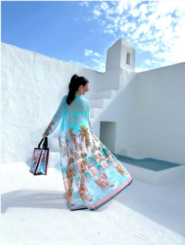 A saída de praia é uma saída longa, desenvolvida em tecido tule com bastante elastano, super confortável, toque suave no corpo, fresca e perfeita para o Verão, uma peça que te permite diversas amarrações diferentes.