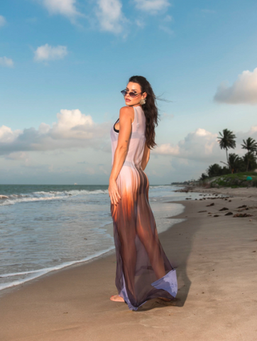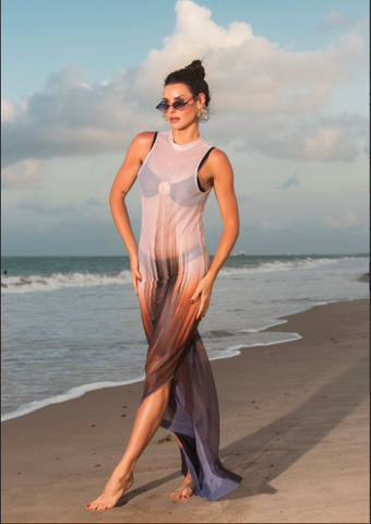 Versátil e sofisticada, pode ser usada tanto na praia quanto em composições mais elegantes de resort ou pós-praia, peça curinga que transforma o look com praticidade e estilo.